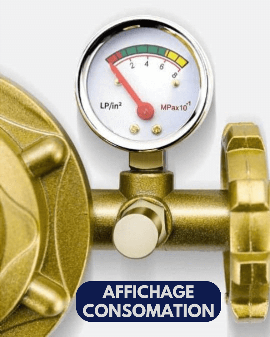 ⭐⭐ « Très facile à installer, et le manomètre est super pratique pour savoir quand il faut changer la bouteille. » – Dieudonné K.